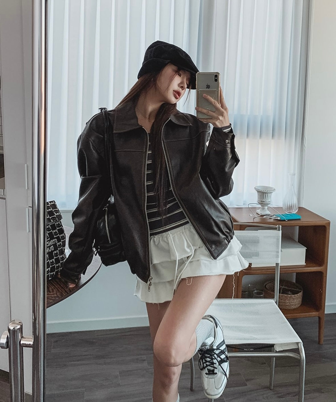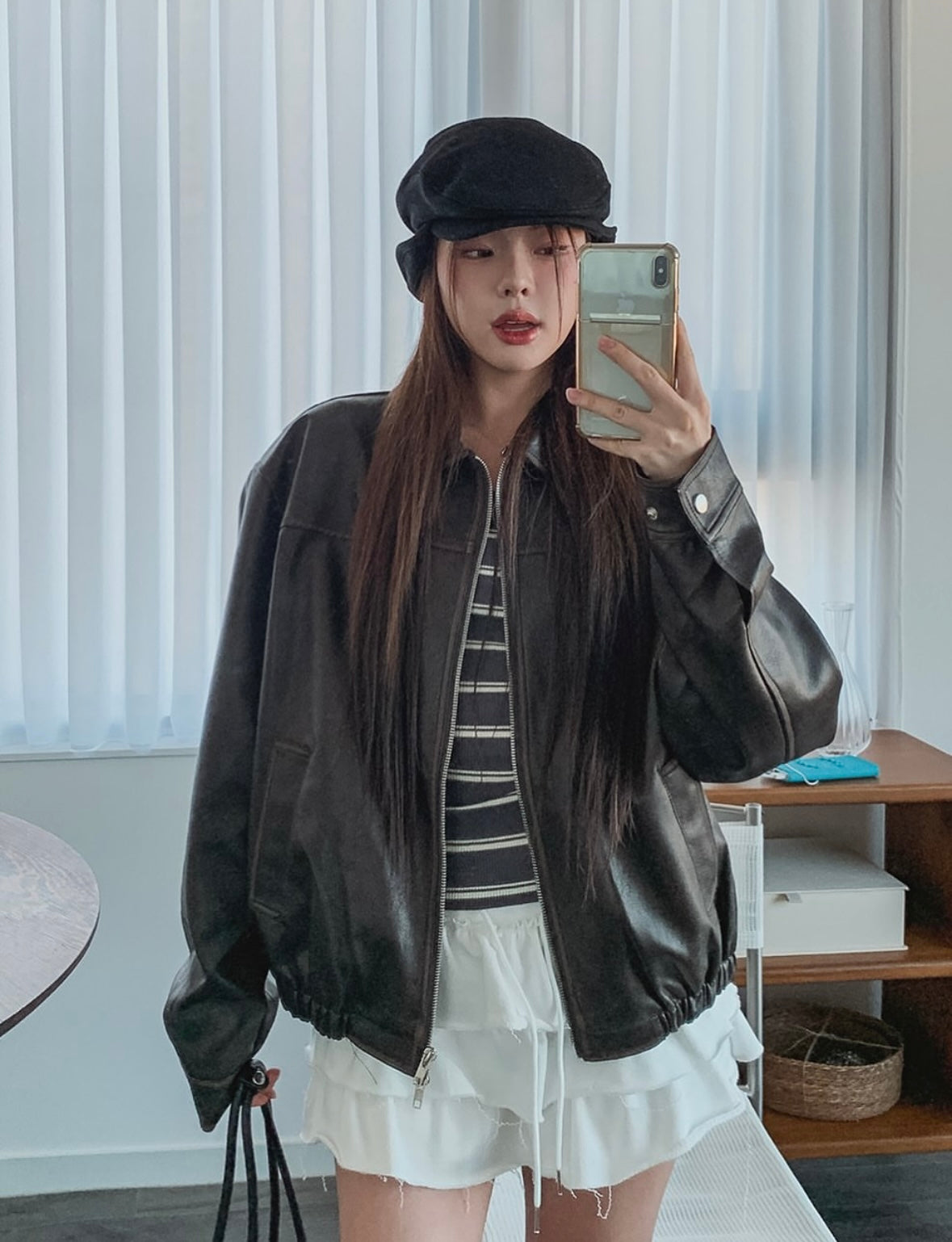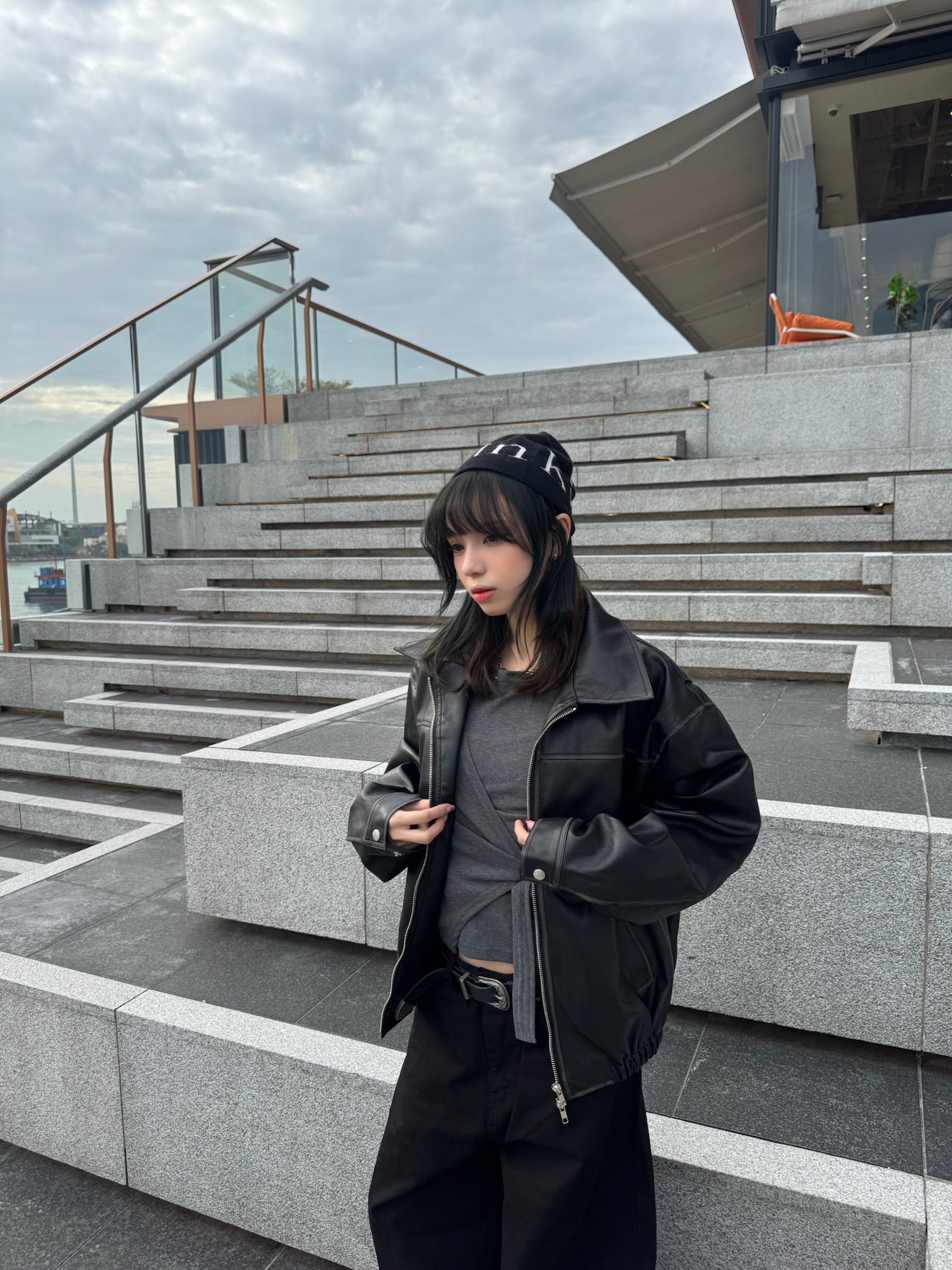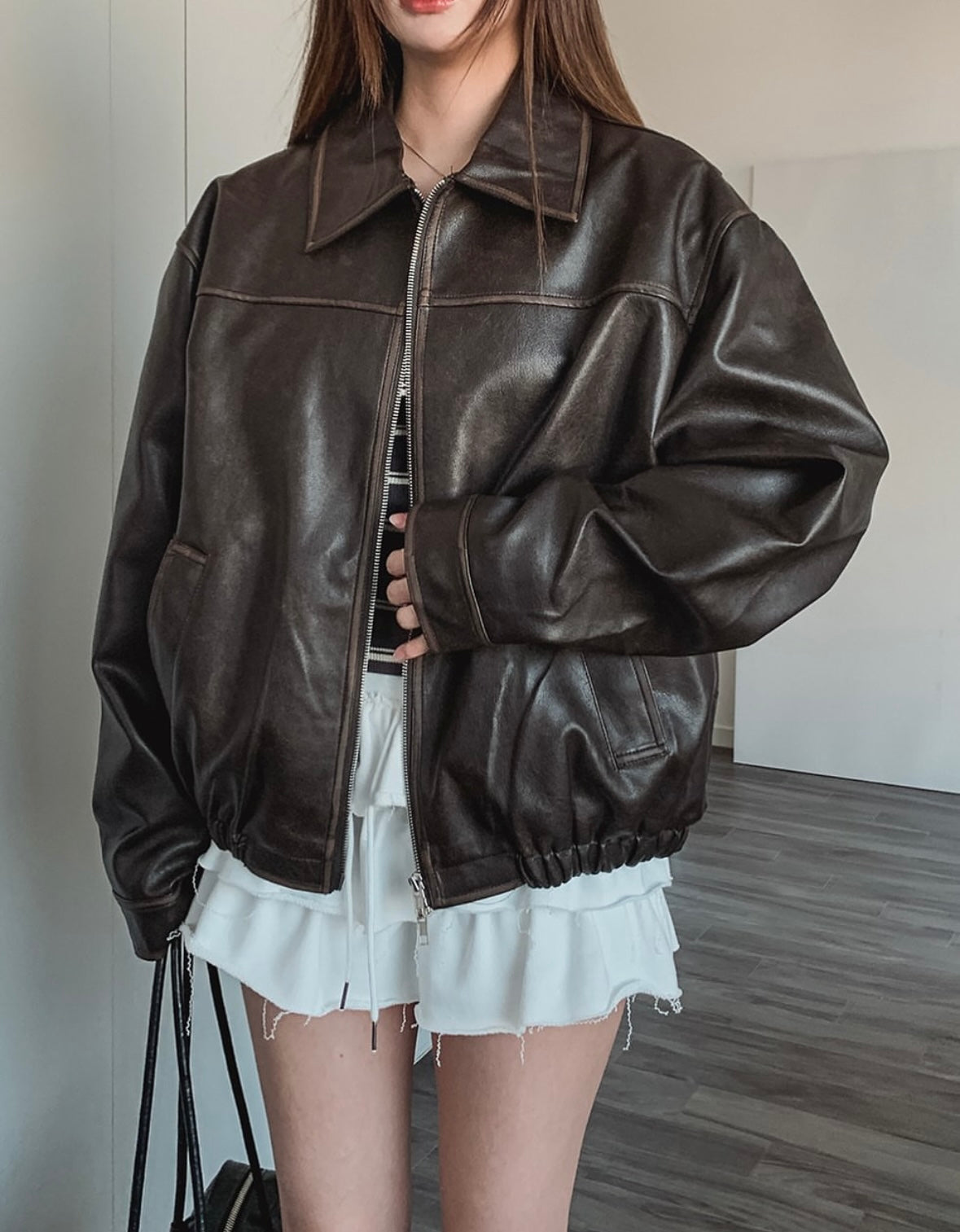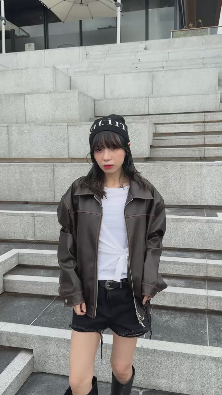 Unisex款洗水皮褸